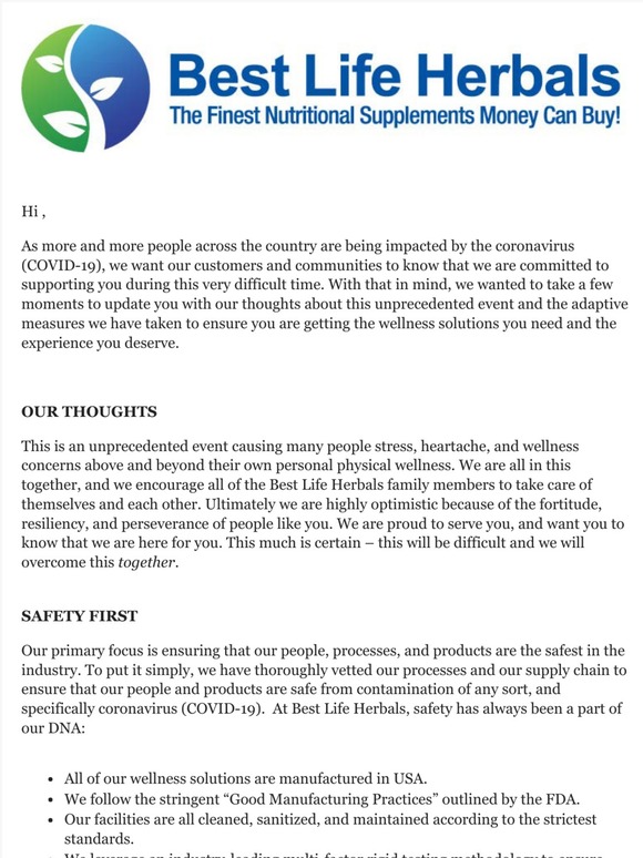 Best Life Herbals : Free shipping on all orders $65 and over.