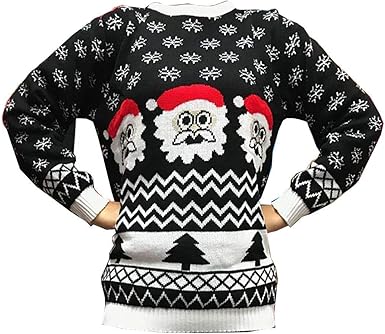 Santa Jumper Womens Santa Jumper Womens : This style has a jolly santa claus face, brought to life with faux fur beard and 3d pom pom decoration.